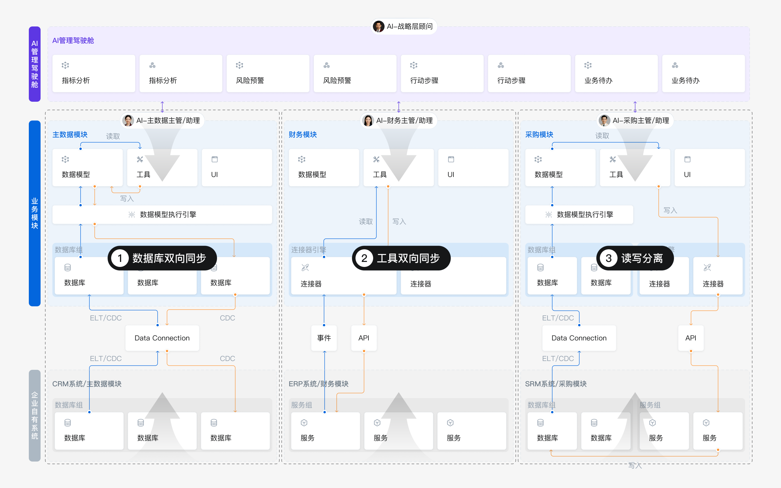 系统根据业务场景启用对应的数智员工,通过业务逻辑绑定贴合业务的语义,避免偏离实际、不可执行的回答或行动建议。